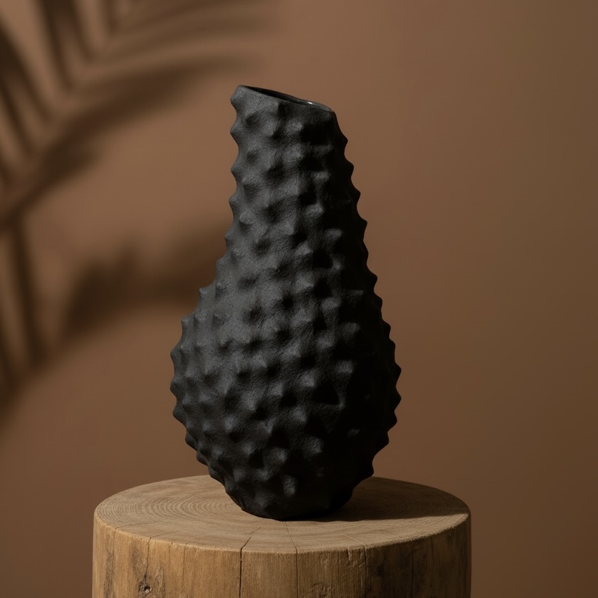 Matière : grés noir émaillé à l’intérieur et non émaillé à l’extérieur.